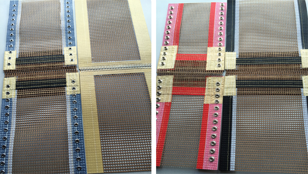 Yüksek sıcaklığa dayanıklı teflon şirink bantı kare delikli ve düz deliksiz olmak üzere iki tiptir. Şirink delikli bantlar mekanik ekli ve kuş gözü kenarlı olarak özel üretim yapılır.
